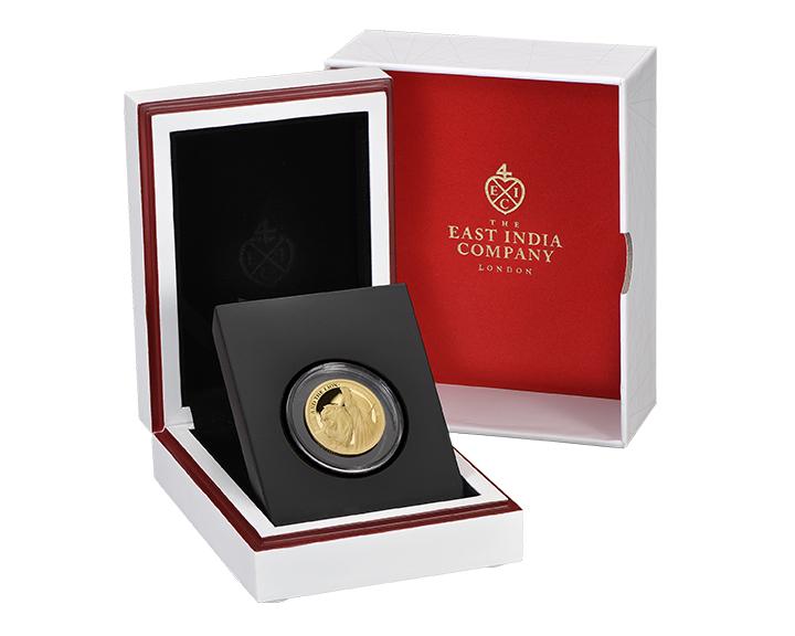 The newest coin in our collection features Una, a heroine for all ages, symbolising beauty, purity and integrity and her Lion, representing strength and honour. This is the first design in a much-anticipated new yearly collection and a hallmark coin for The East India Company. Designed by Glyn Davies, this modern interpretation of a classic heroine and her protector are beautifully captured in a striking pose representing beauty and power.