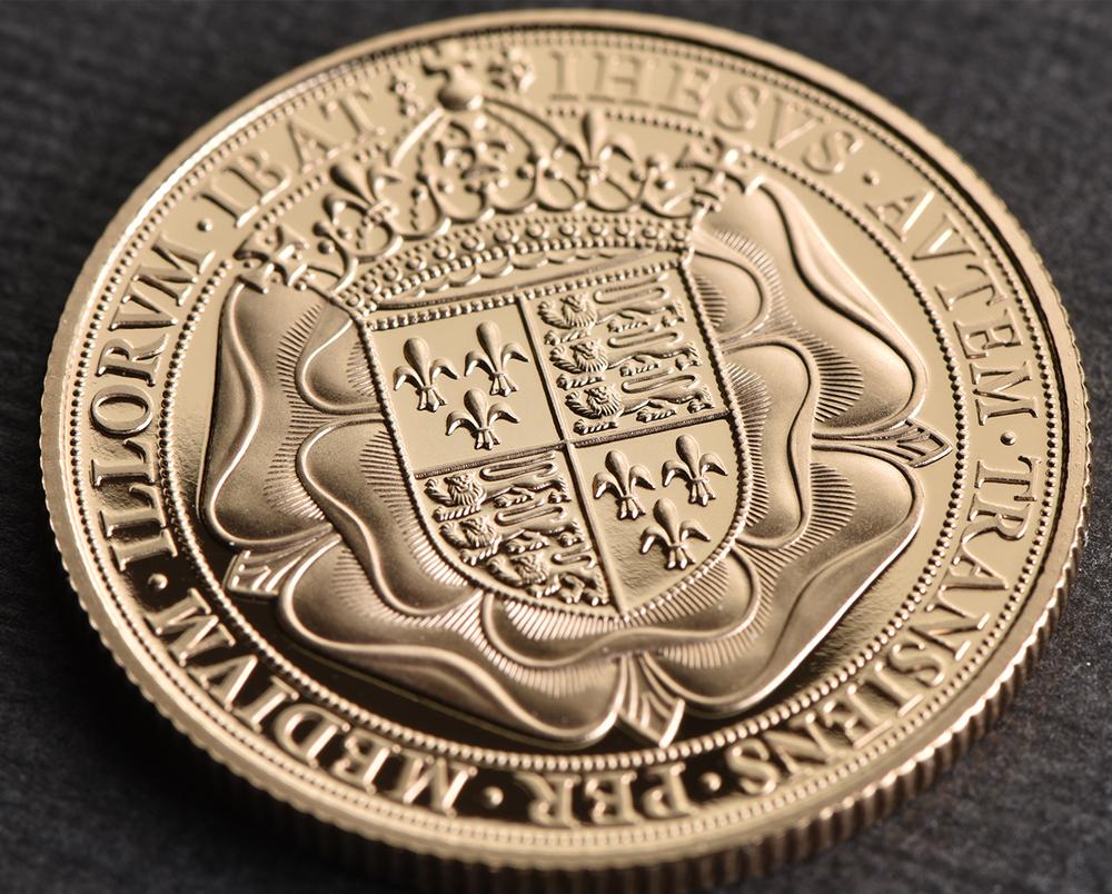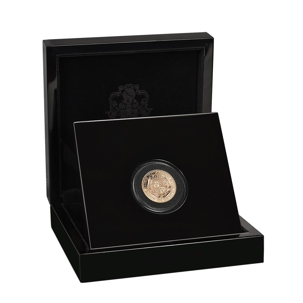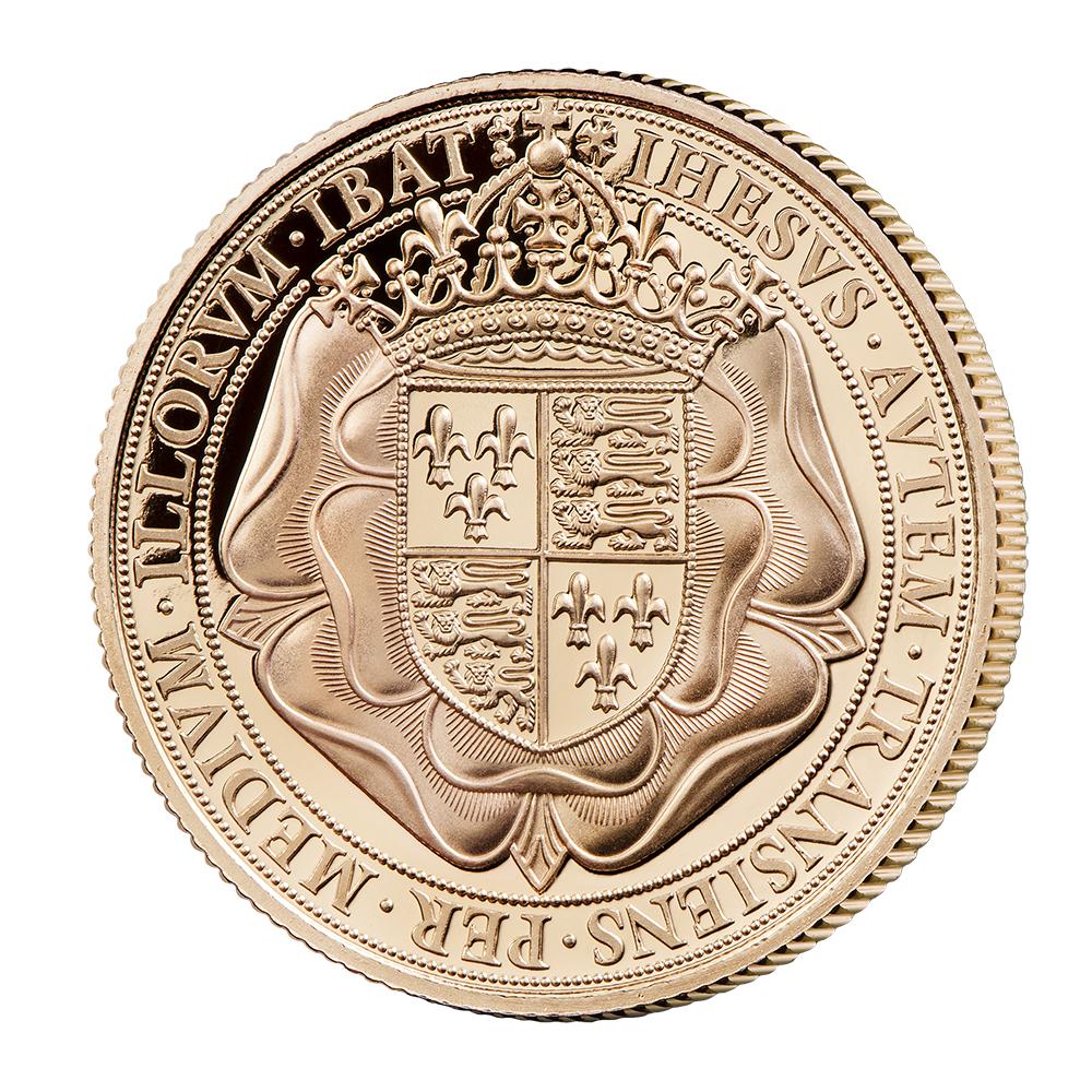 This exceptional proof Double Sovereign features the Royal Arms on the reverse, within a magnificent crowned double rose.