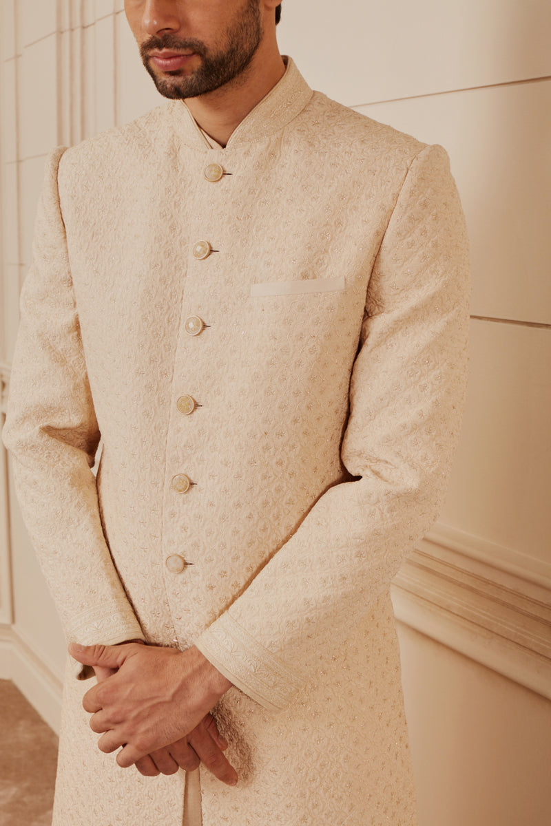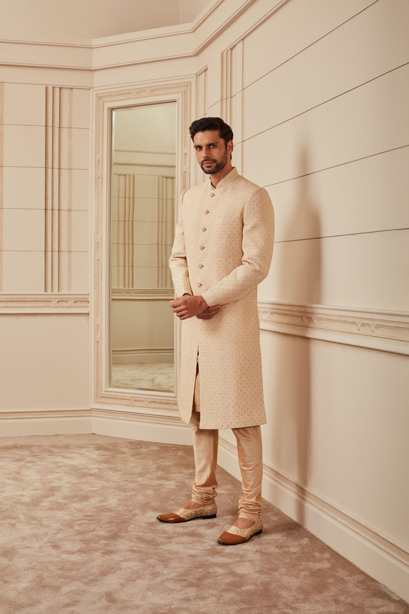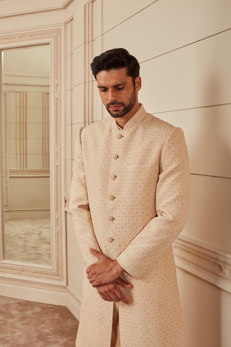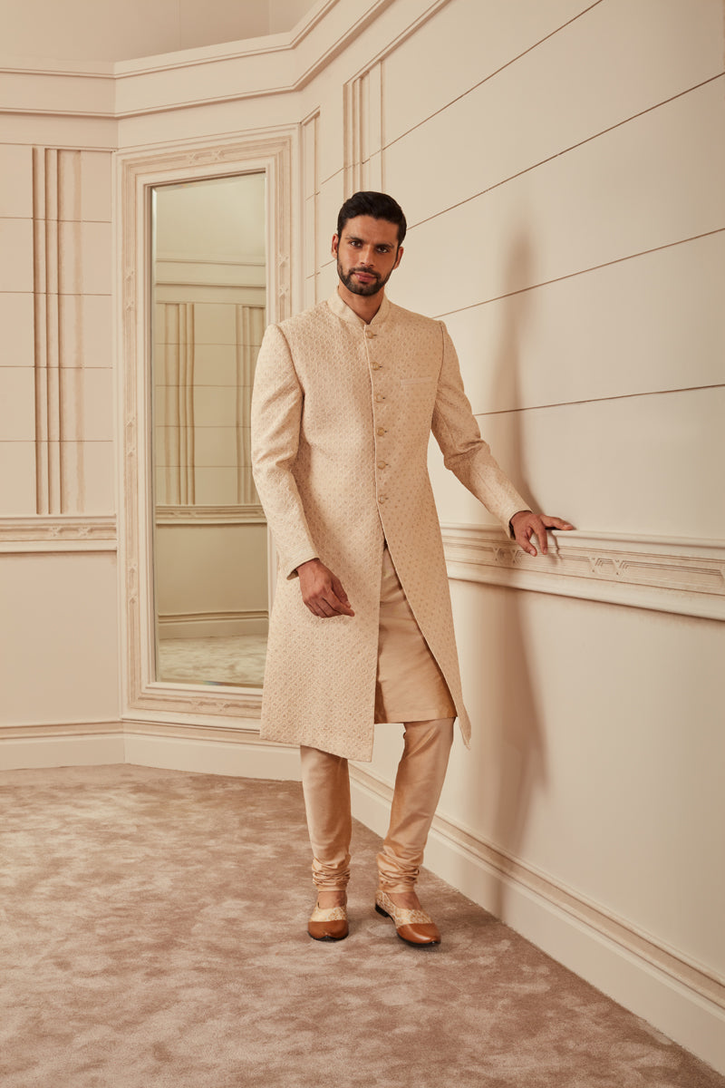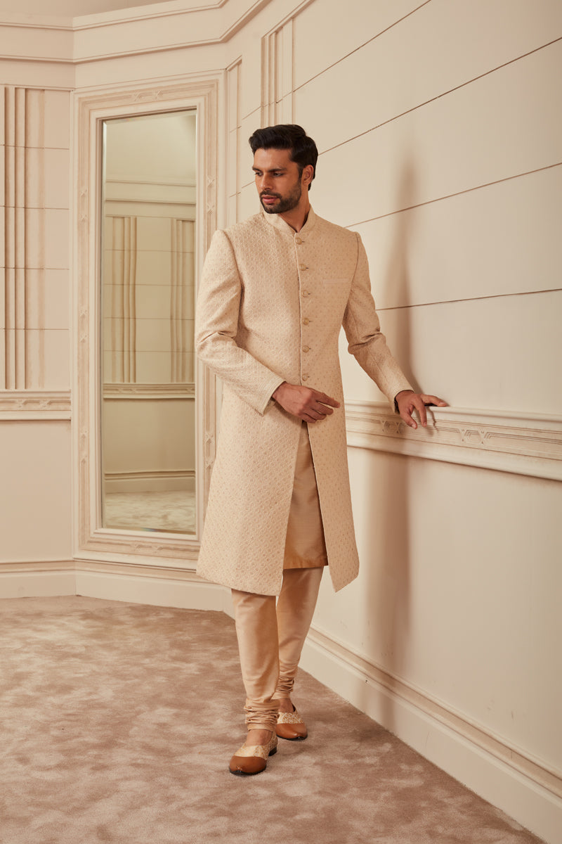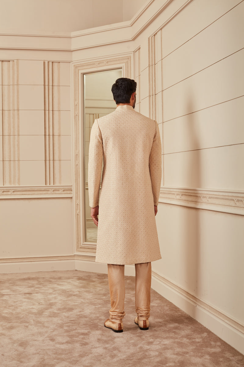 Beige Quilted Sherwani
