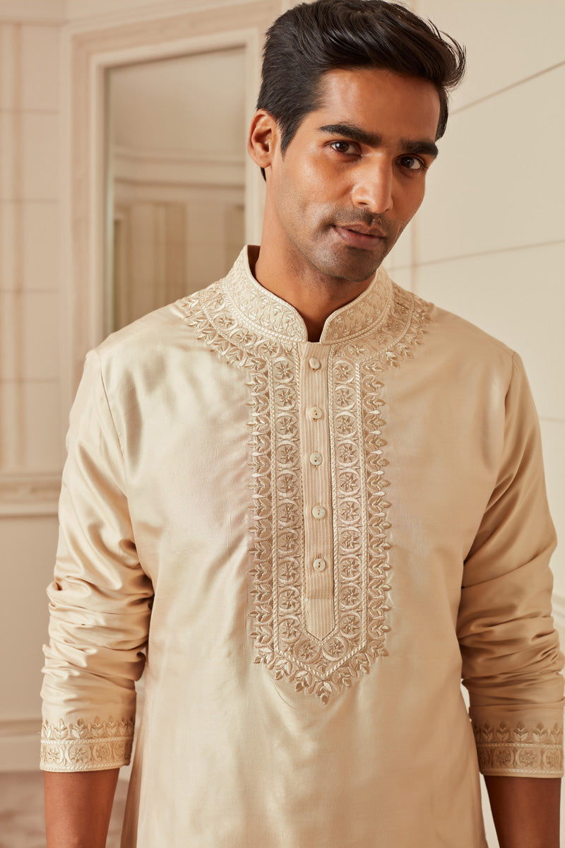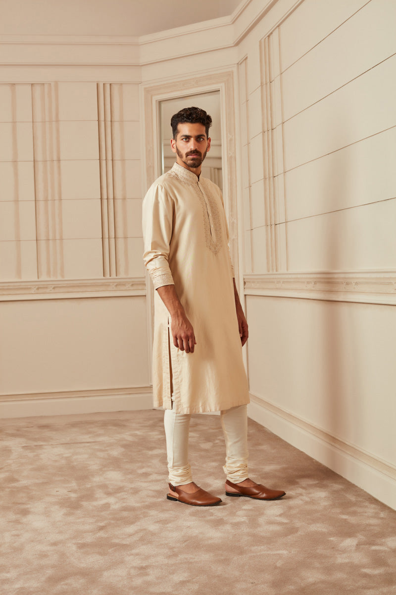 Beige Spun Silk Kurta Set