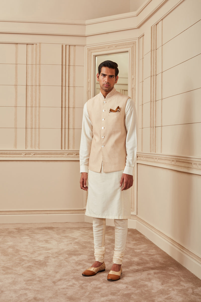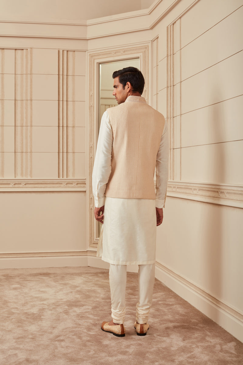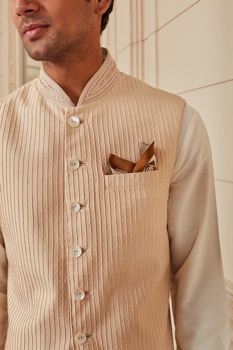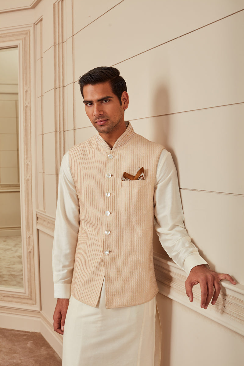 BEIGE POLYSTAPLE BUNDI WITH TOP STITCH