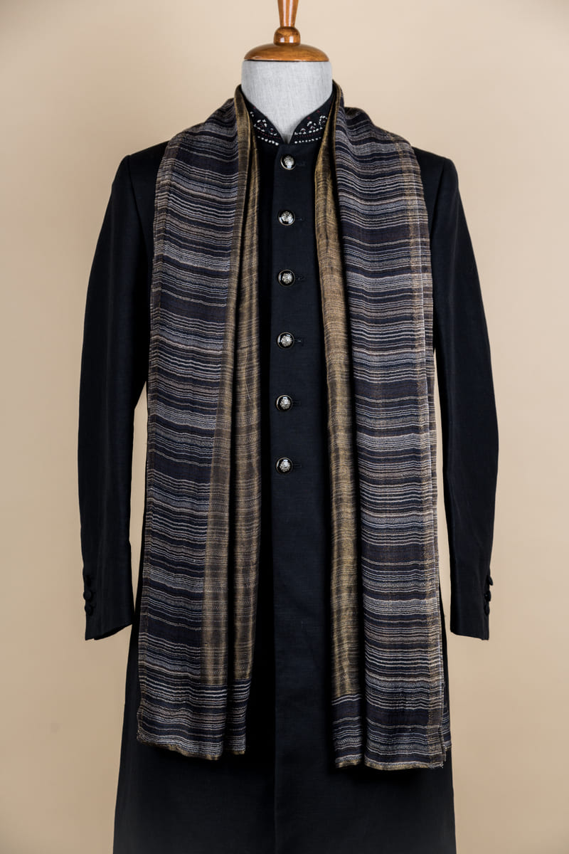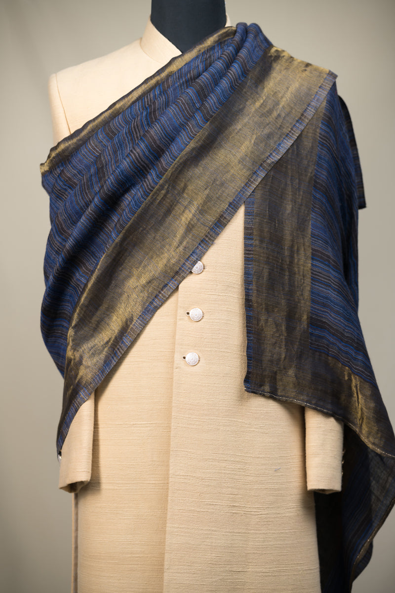 Blue Golden Striped Stole