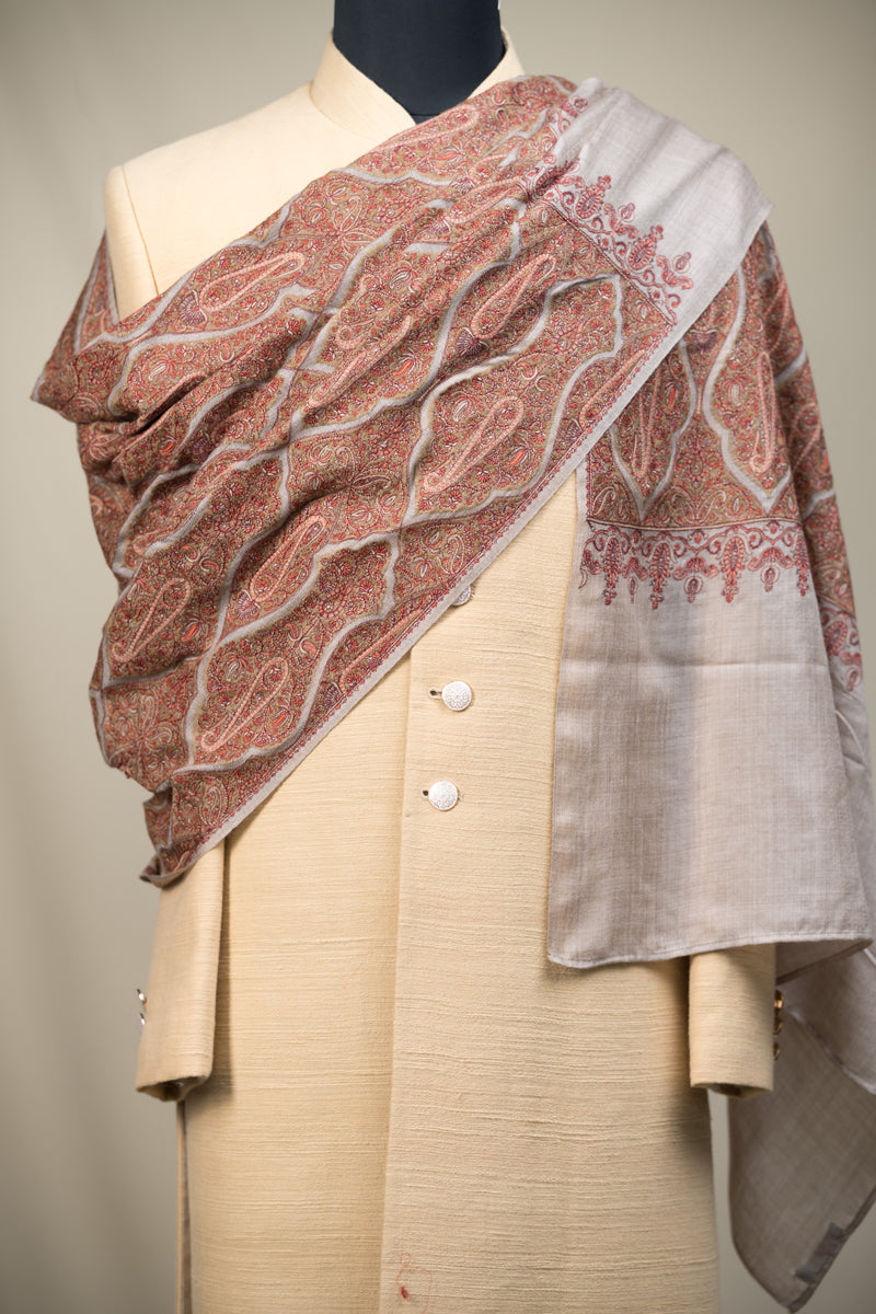 Your gold sherwani–although a standout piece–will get an elegant makeover with this brown stole featuring a graphic paisley pattern.
