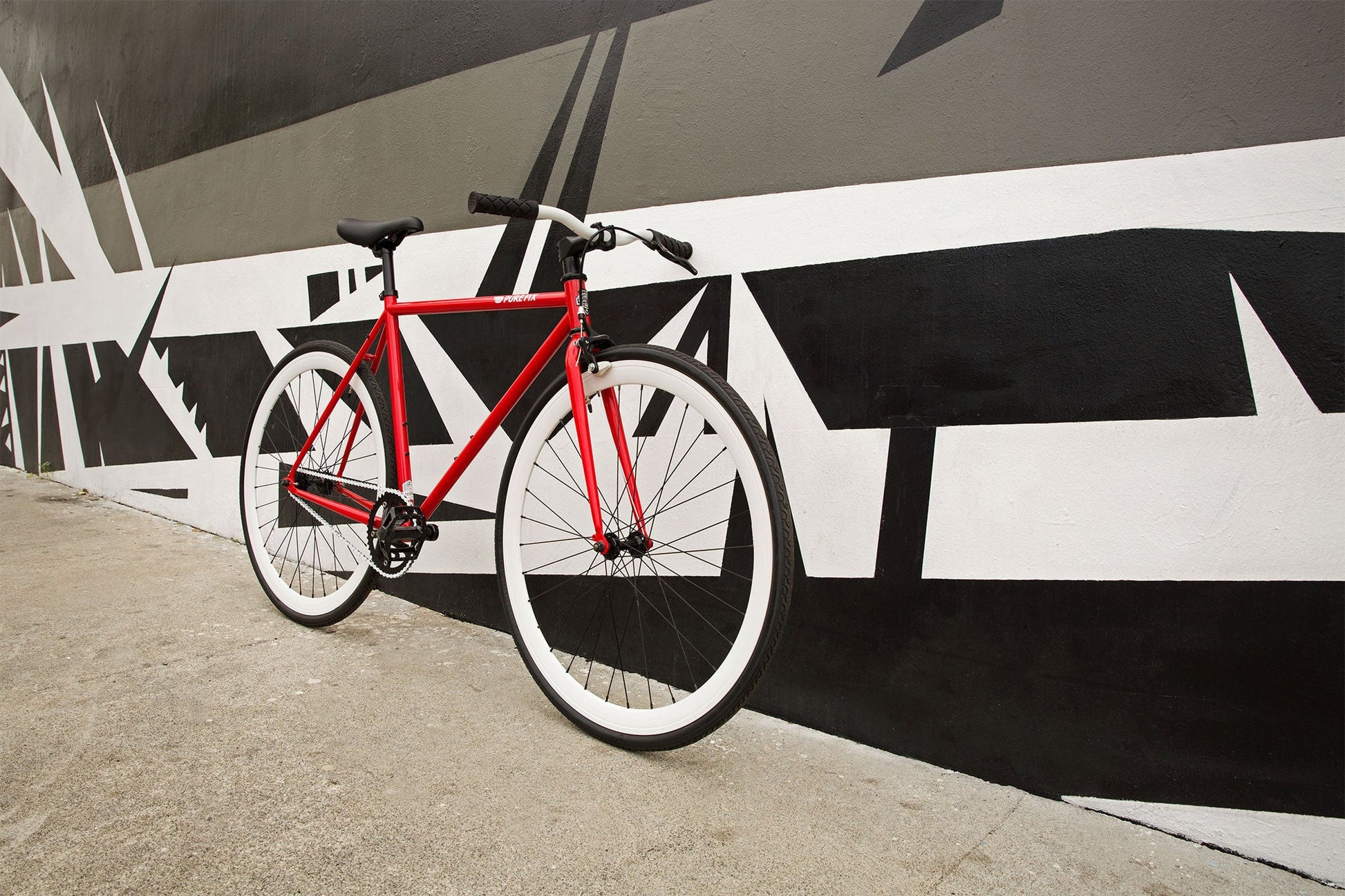 Is there anything more timeless than a little red bicycle? With its deep dish white wheels, the Charlie is a contemporary spin on the American classic.
