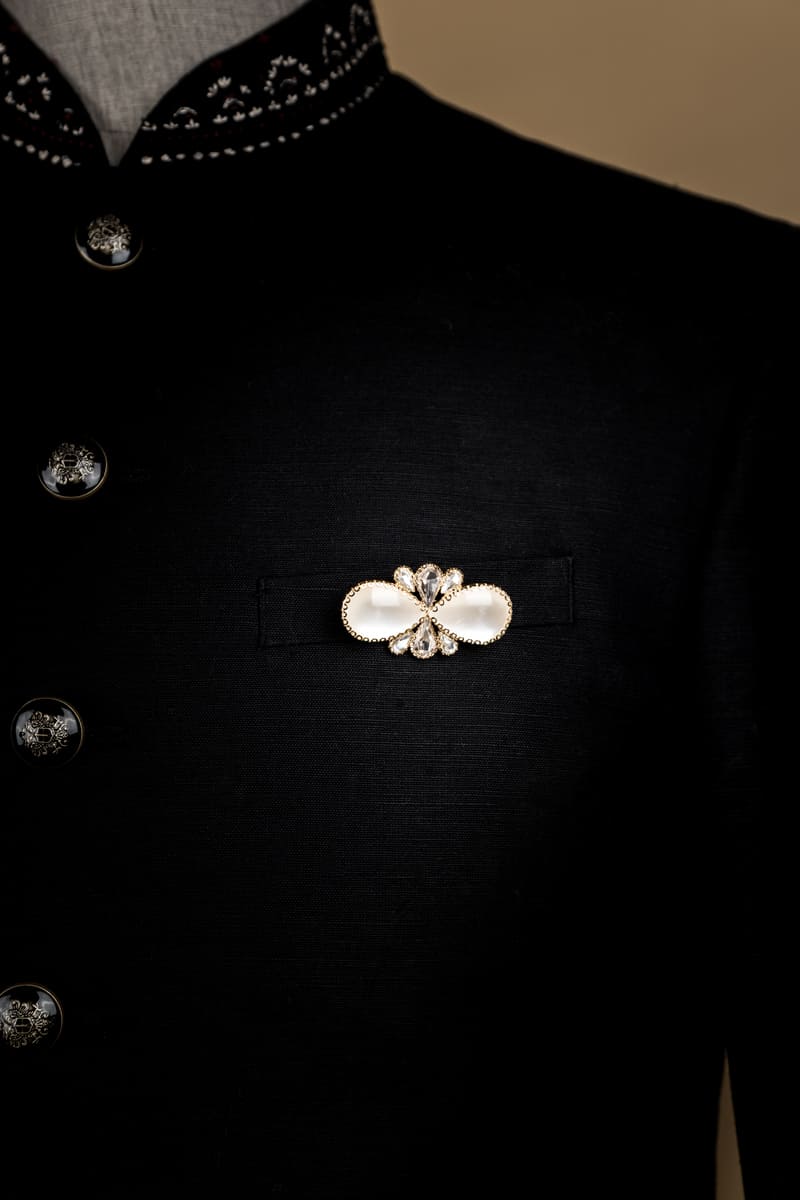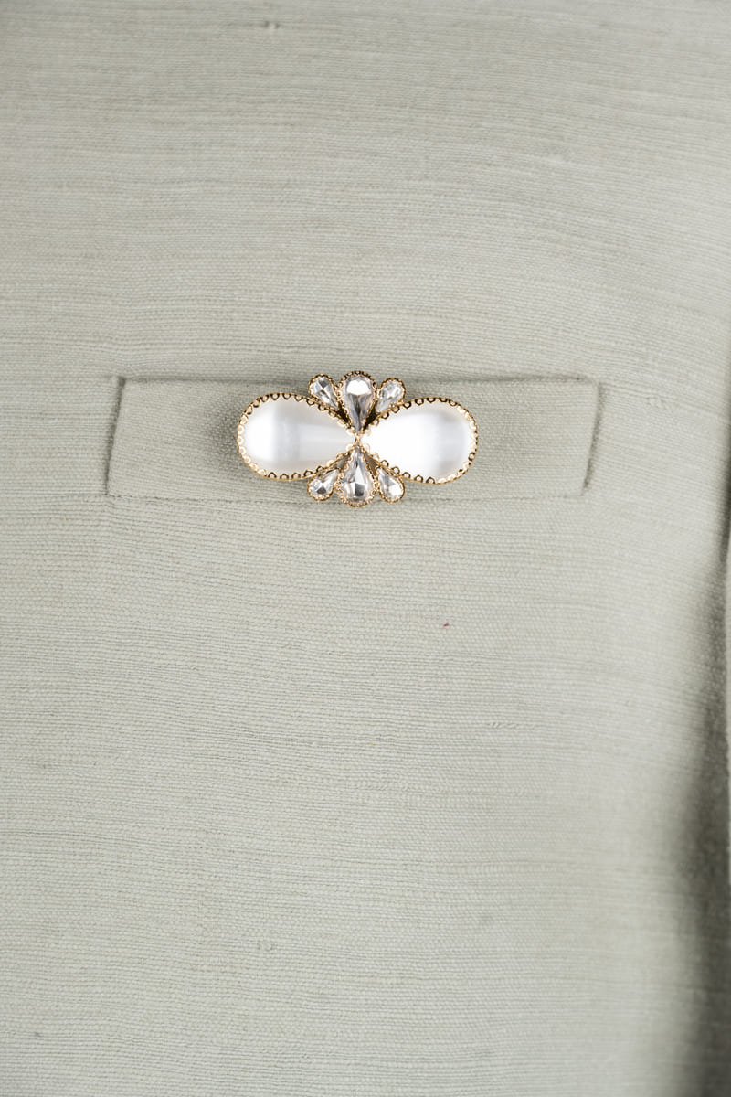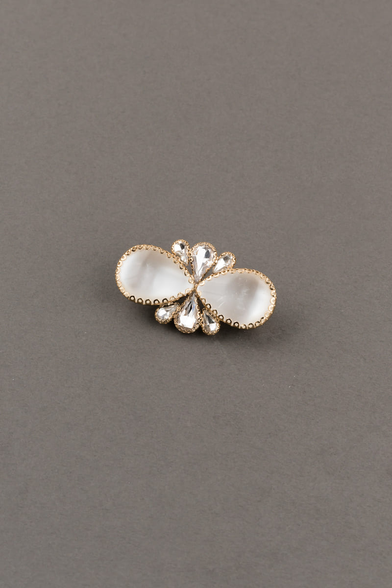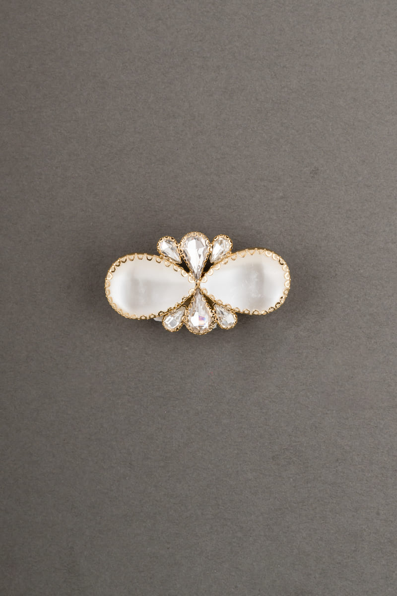 Go for a contemporary shape when picking your wedding accessory, just like this peach crystal and stone-encrusted brooch.