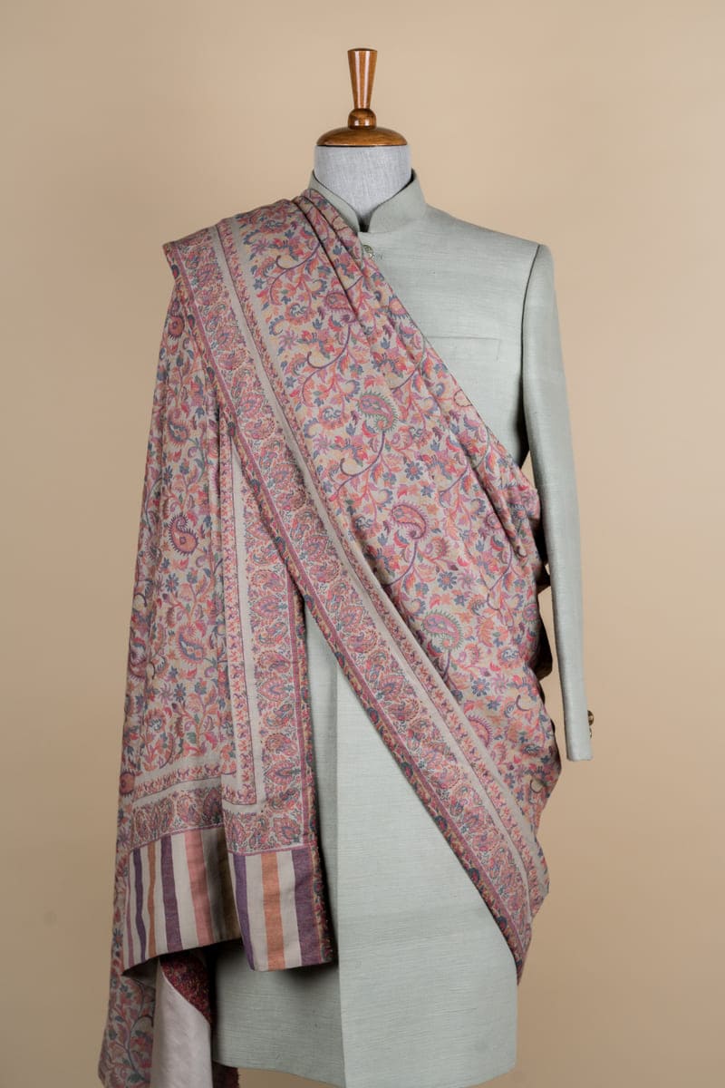 Soft, pastel shades and dainty patterns come together in this beige and pink stole that can steal the show at any festive event you wear it.