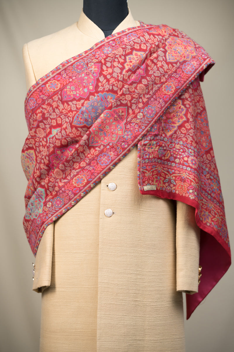 If you fancy a more colourful approach to your ensemble, then this red patterned stole featuring a colourful pattern is just for you.