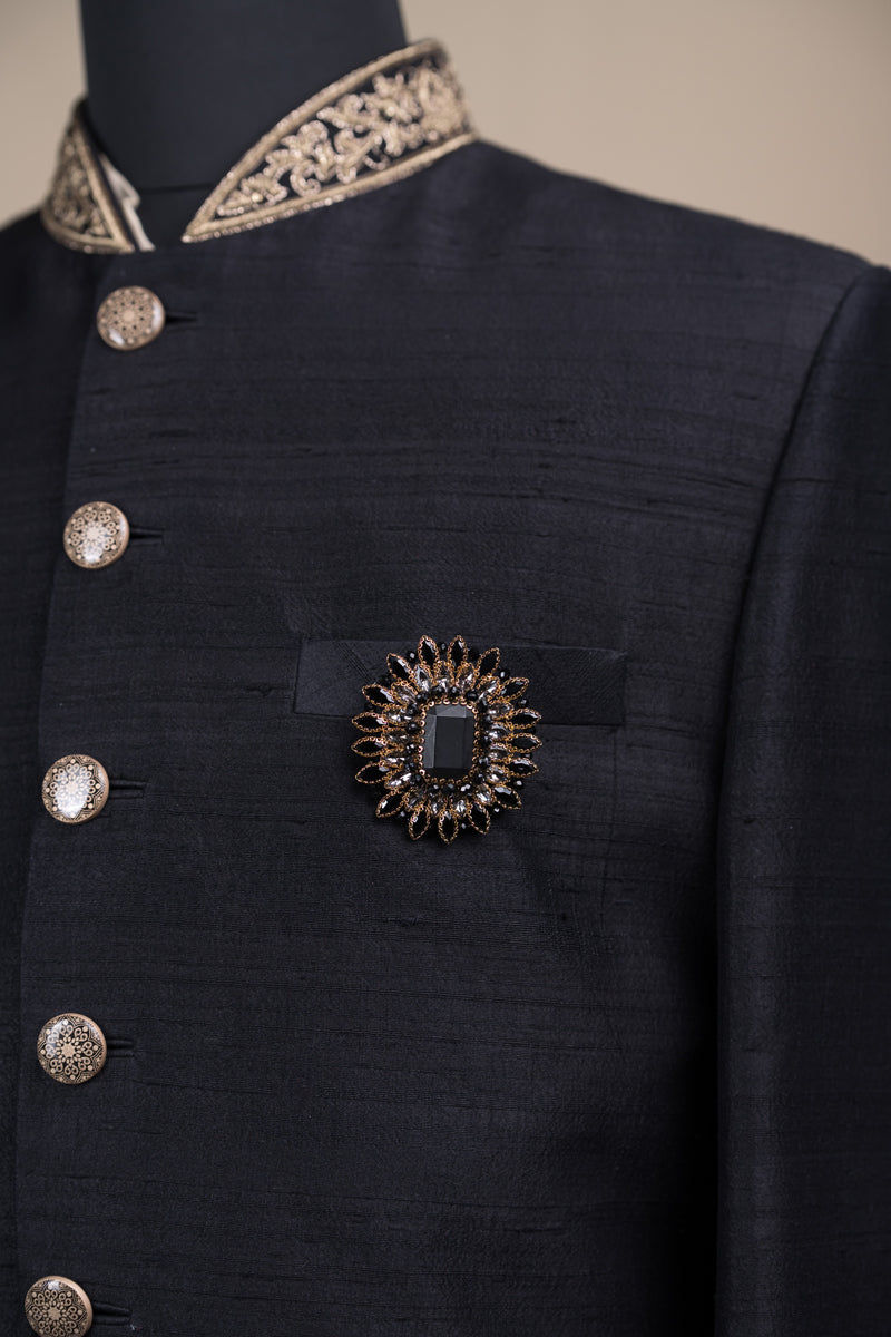 Channel the energy of yin and yang by accessorising your ivory outfit with this oval black crystal and stone brooch.