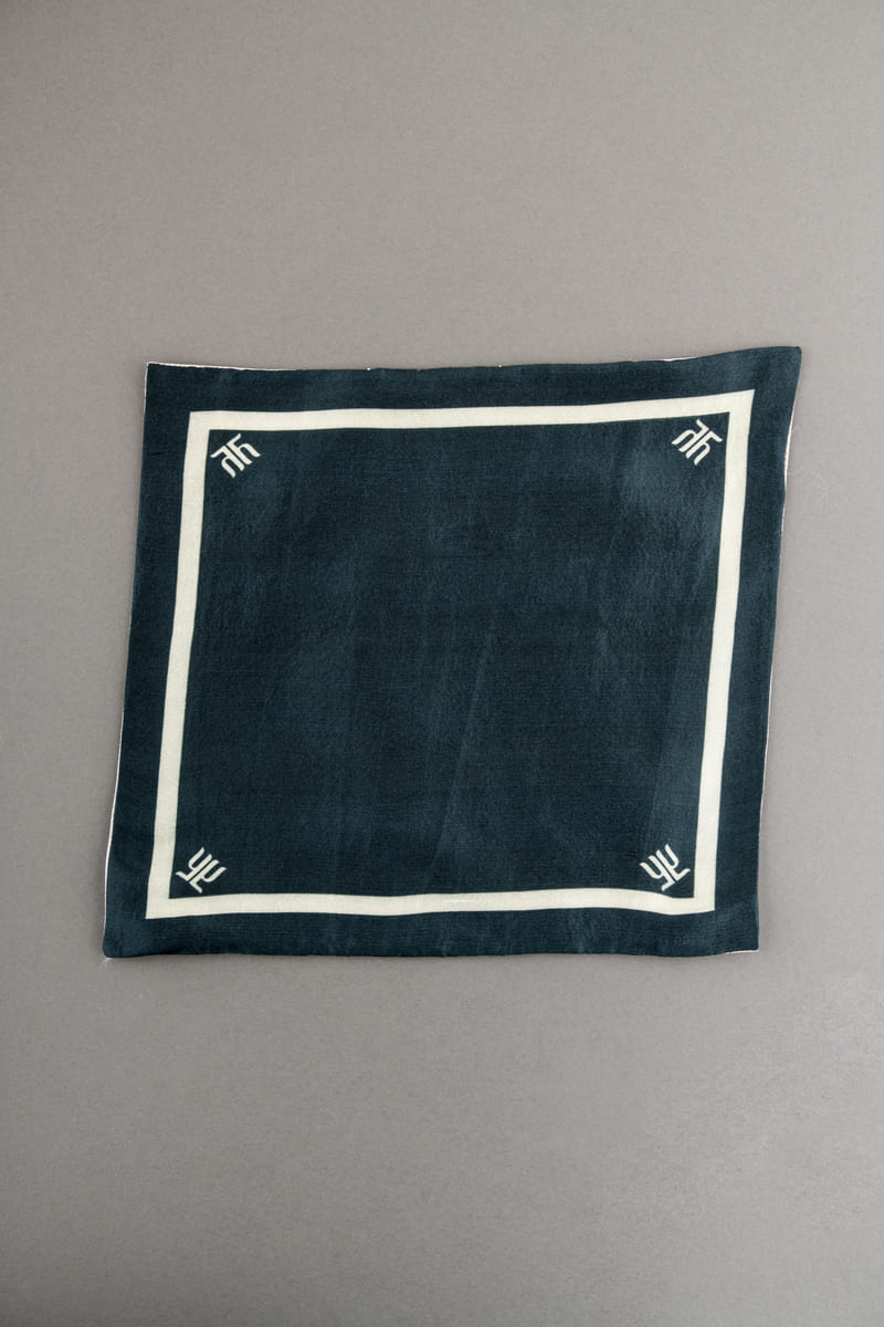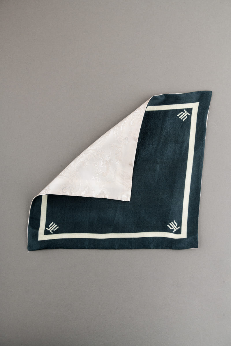 A fun look is made livelier with a colour tha stands out like this printed teal pocket square.